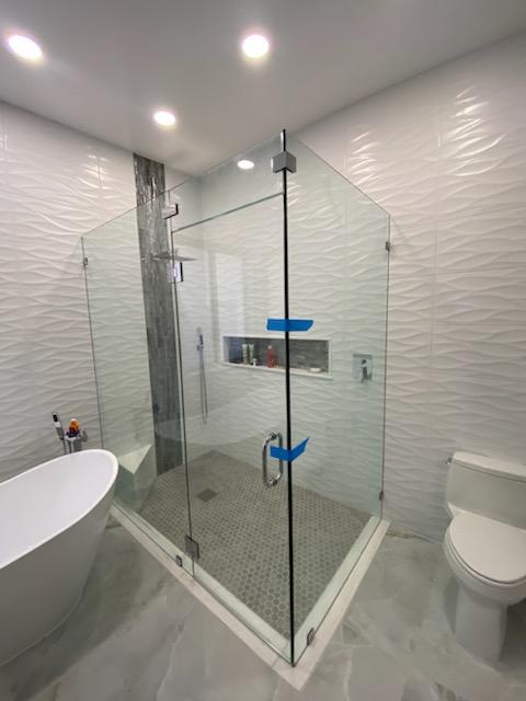 Physical installation of different varieties of glass showers.